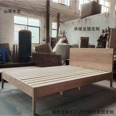 工厂白橡木原木实木架子床来图定制白蜡木榫卯结构大板双人床