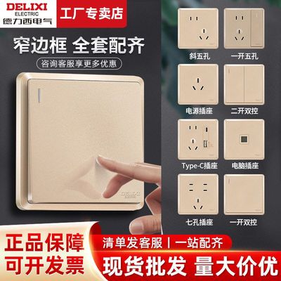 德力西开关插座一开五孔面板墙壁