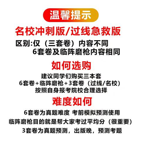 李永乐武忠祥2025数一二三冲刺卷 【售价】:¥5.19 【券后】:¥3.19 【优惠券】:¥2 推荐理由:2026考研李永乐/武忠祥6+3数学一二三冲刺卷,考研数学临阵磨枪,理清知识脉络,罗列知识清单,做考研好题,背基本公式,稳定心态,稳拿基础分,助力考研上岸~ 👉复制这条信息打开【手机淘宝APP】即可领券购买:/