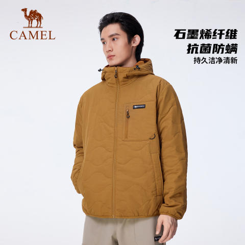 【石墨烯】骆驼男装冬季男款加厚棉袄外套中长款宽松连帽保暖棉服