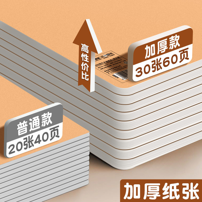 家长们,今天给大家推荐一款非常适合小学生使用的作业本,加厚款券后仅3.1元包邮。是这种非常经典的牛皮纸封面设计,而且它的纸张是那种非常加厚的,长时间书写也不会渗墨,上手之后呢,它会有一种非常顺滑的书写感。而且它这个封面摸上去的手感非常好,就是那种非常结实耐用的,有质感的封面。而且这款作业本还有一个非常大的特点,就是它有多种规格和装订选择,非常适合不同科目的作业练习,非常实用。