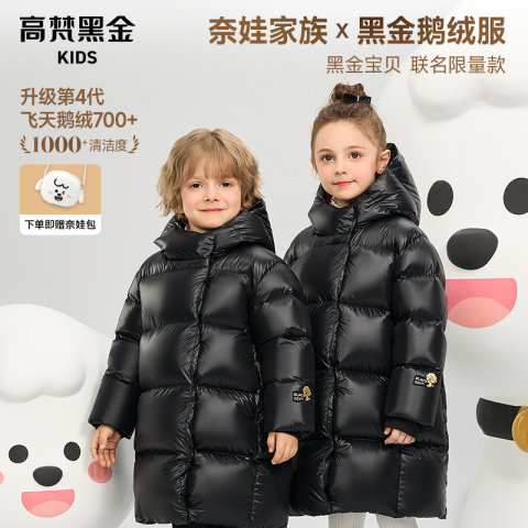 奈娃造型可爱鹅绒服,瑞士抗菌绒科技呵护备至,全新升级黑金宝贝五边形5大维度显著提升。