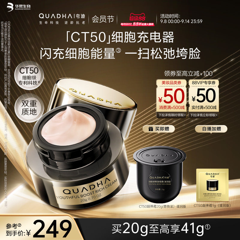 【买20g到手41g,官方立减38,到手239元】夸迪CT50抗垮面霜,7天嘭弹饱满28天紧致上扬~