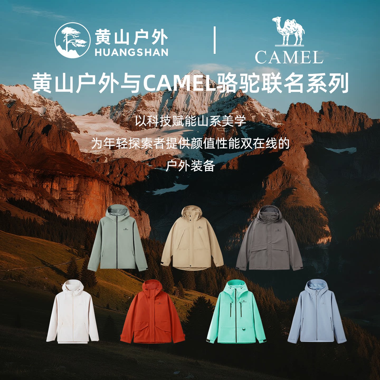 骆驼联名黄山峰壳男女防风防水冲锋衣外套夹克情侣户外登山衣运动