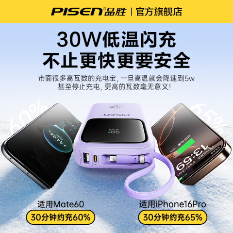 3C认证可上飞机【政府补贴15%】品胜2025新款彩豆充电宝快充大容量超薄小巧便携带线移动电源适用苹果17小米