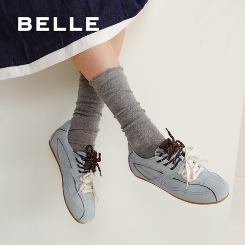 周雨彤同款百丽女鞋跳跳糖复古红色芭蕾德训鞋内增高休闲鞋子预