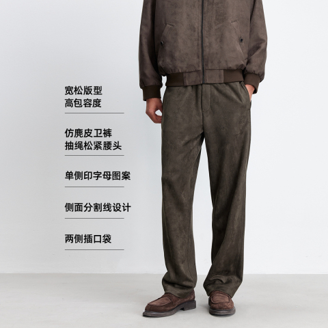 仿麂皮卫裤,抽绳松紧腰头。宽松版型,高包容度!