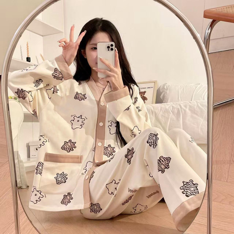 2025年新款睡衣女春秋季长袖甜美开衫宽松家居服高级感套装 MLJ