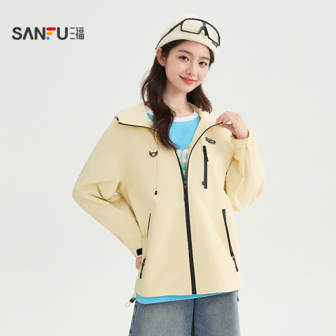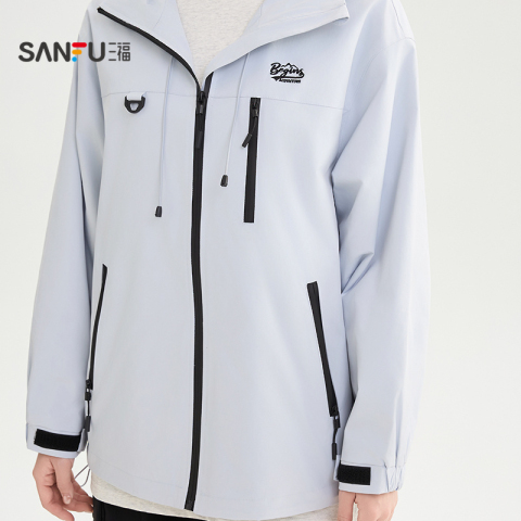 三福冲锋衣2025新款秋季高级感魔术贴袖口宽松连帽外套女装507446