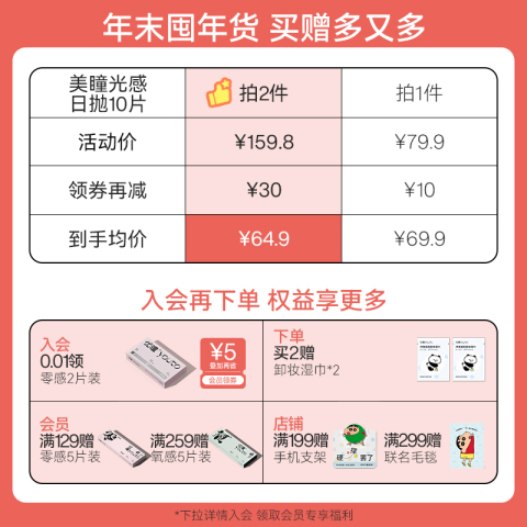优瞳水光感系列美瞳日抛10片,卷后:30.9元,下拉淘金币抵扣到手21.17元