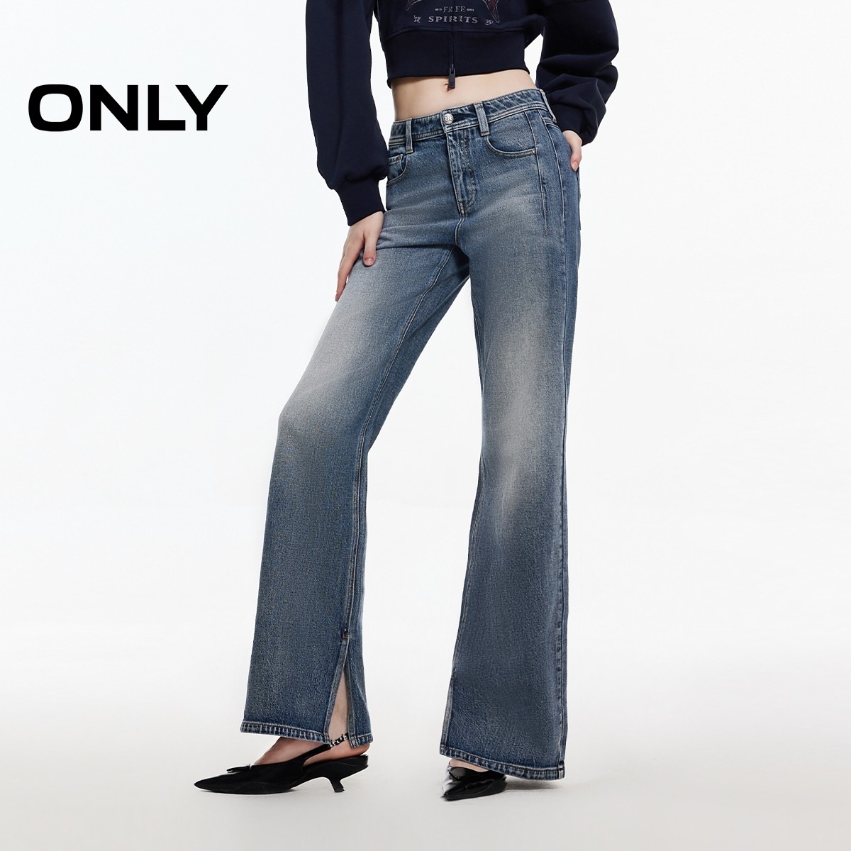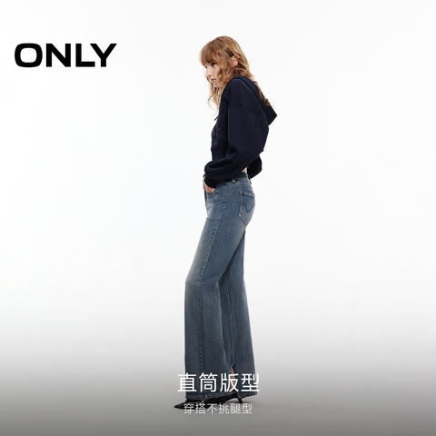 ONLY2025秋季新款复古磨白水洗直筒裤长裤牛仔裤女|125132003