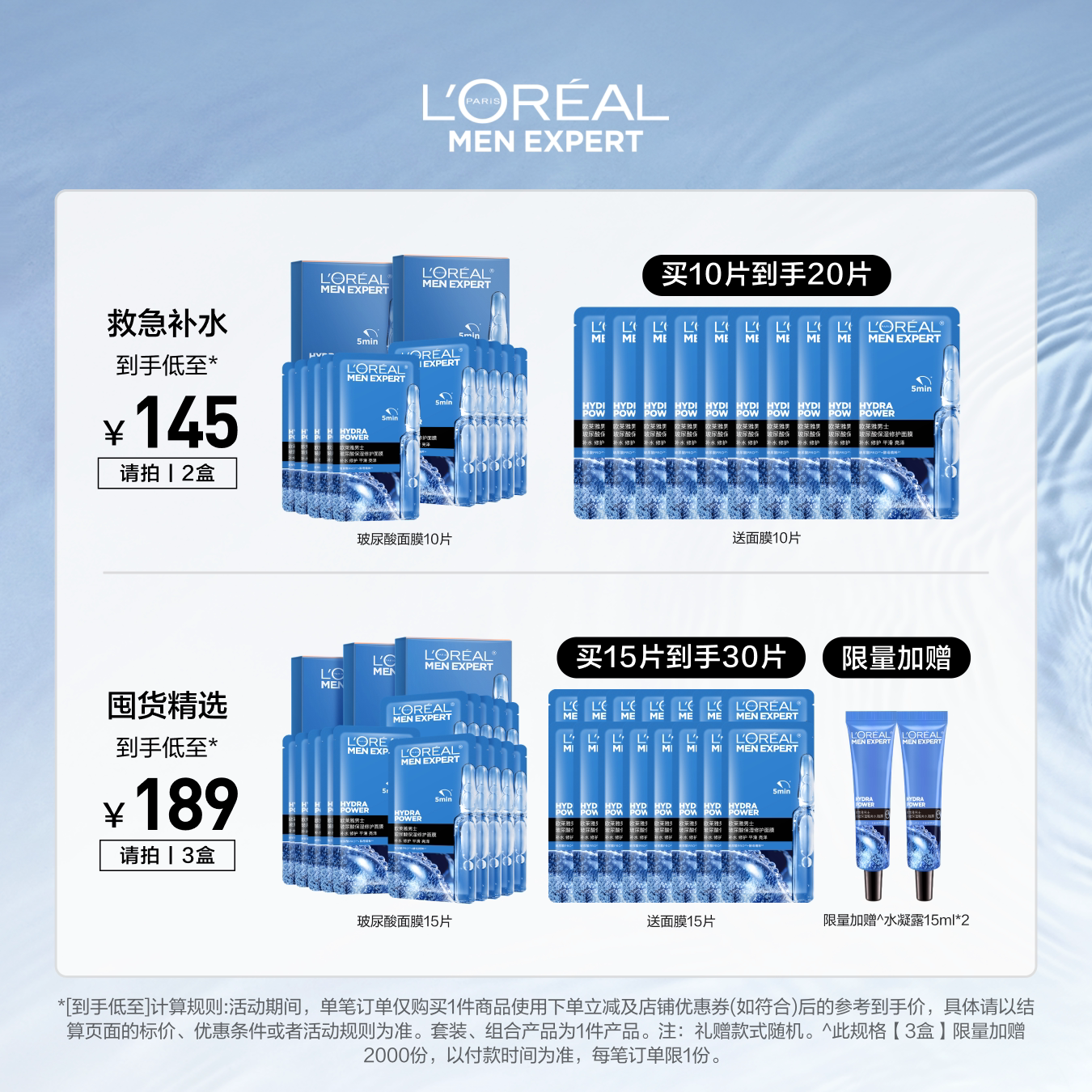 欧莱雅男士专用玻尿酸面膜晒后修护救急补水保湿官方旗舰店正品