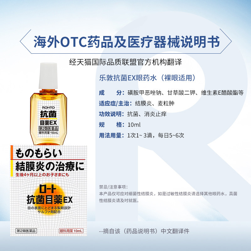 【自营】ROHTO乐敦抗菌眼药水EX结膜炎眼痒眼睑炎滴眼液10ml
