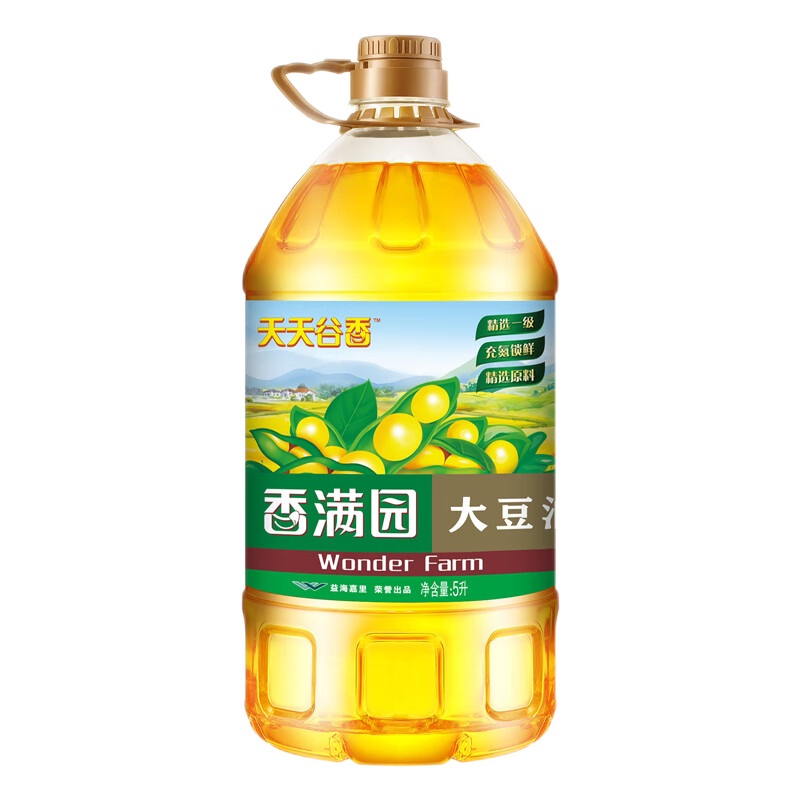 立减/香满园一级大豆油5L*2转基因 家用烹饪油色拉油煎炒炸食用油