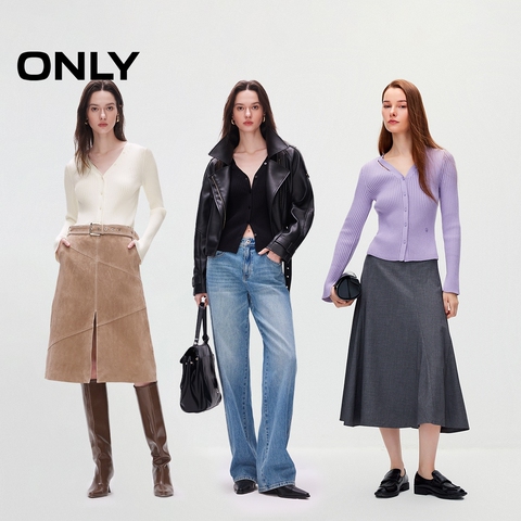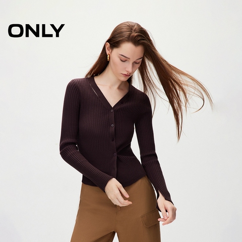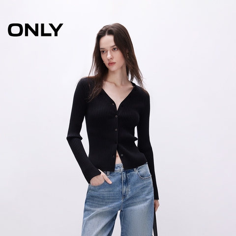 ONLY2025秋季新款简约百搭高级感单排扣V领修身显瘦长袖针织衫女