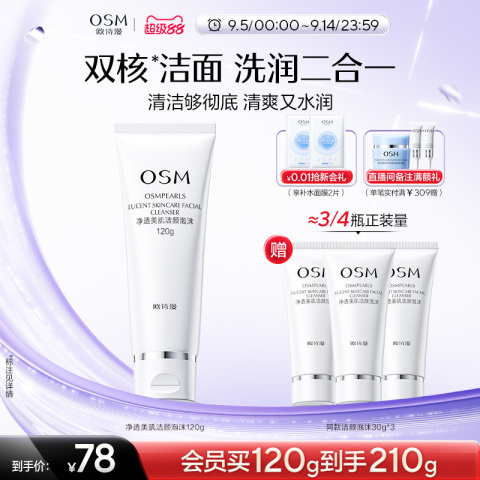 欧诗漫洗面奶洁颜深层清洁毛孔保湿泡沫绵密洗面洁面乳护肤品正品