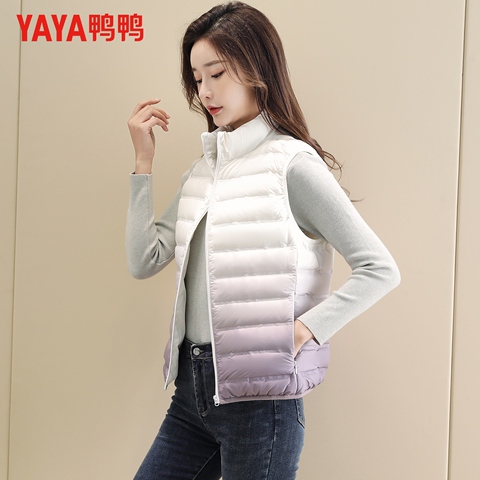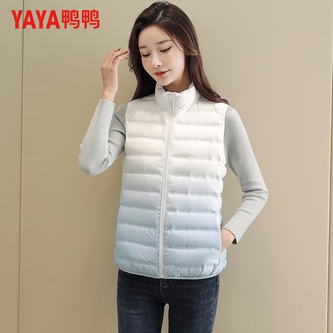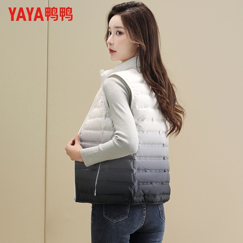 鸭鸭秋冬轻薄羽绒马夹女款时尚休闲立领马甲渐变色百搭保暖外套