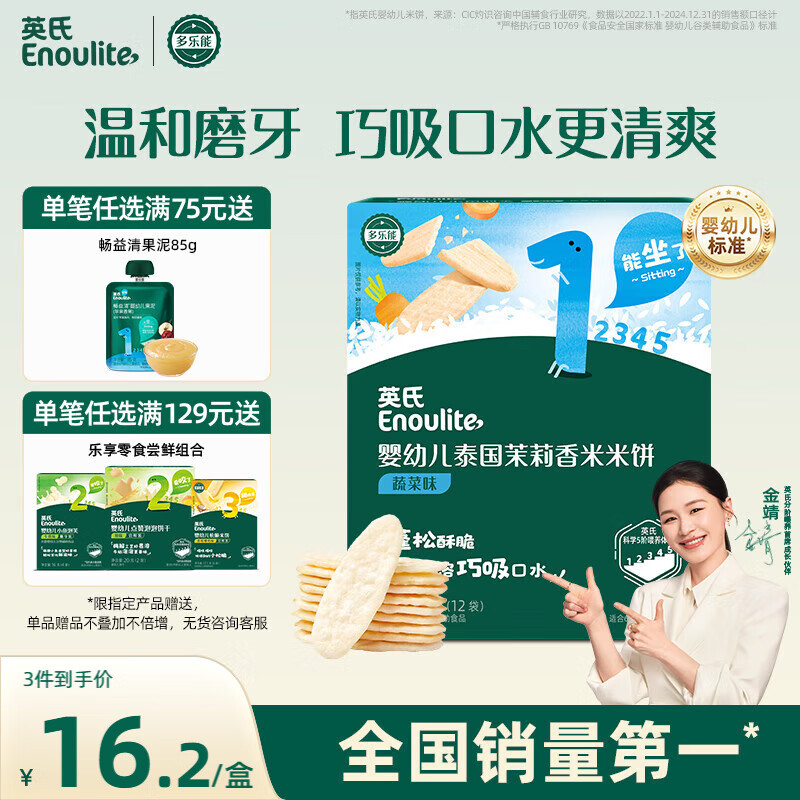 英氏(Engnice)婴幼儿米饼蔬菜味 宝宝婴儿零食磨牙饼干 无添加食盐白砂糖48g