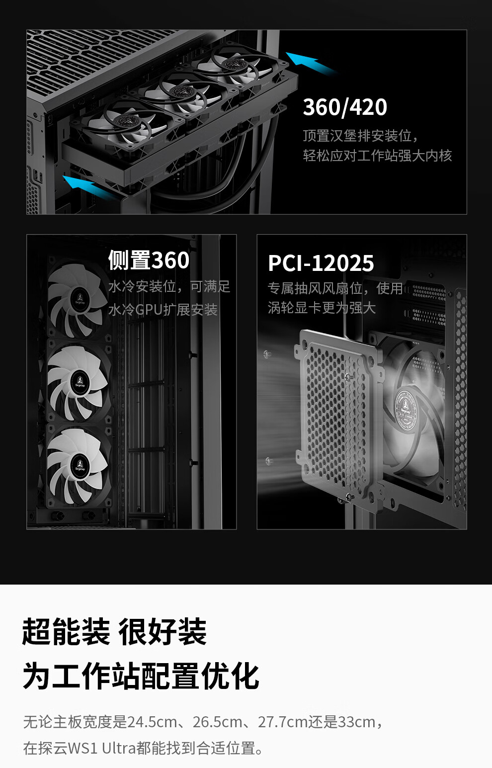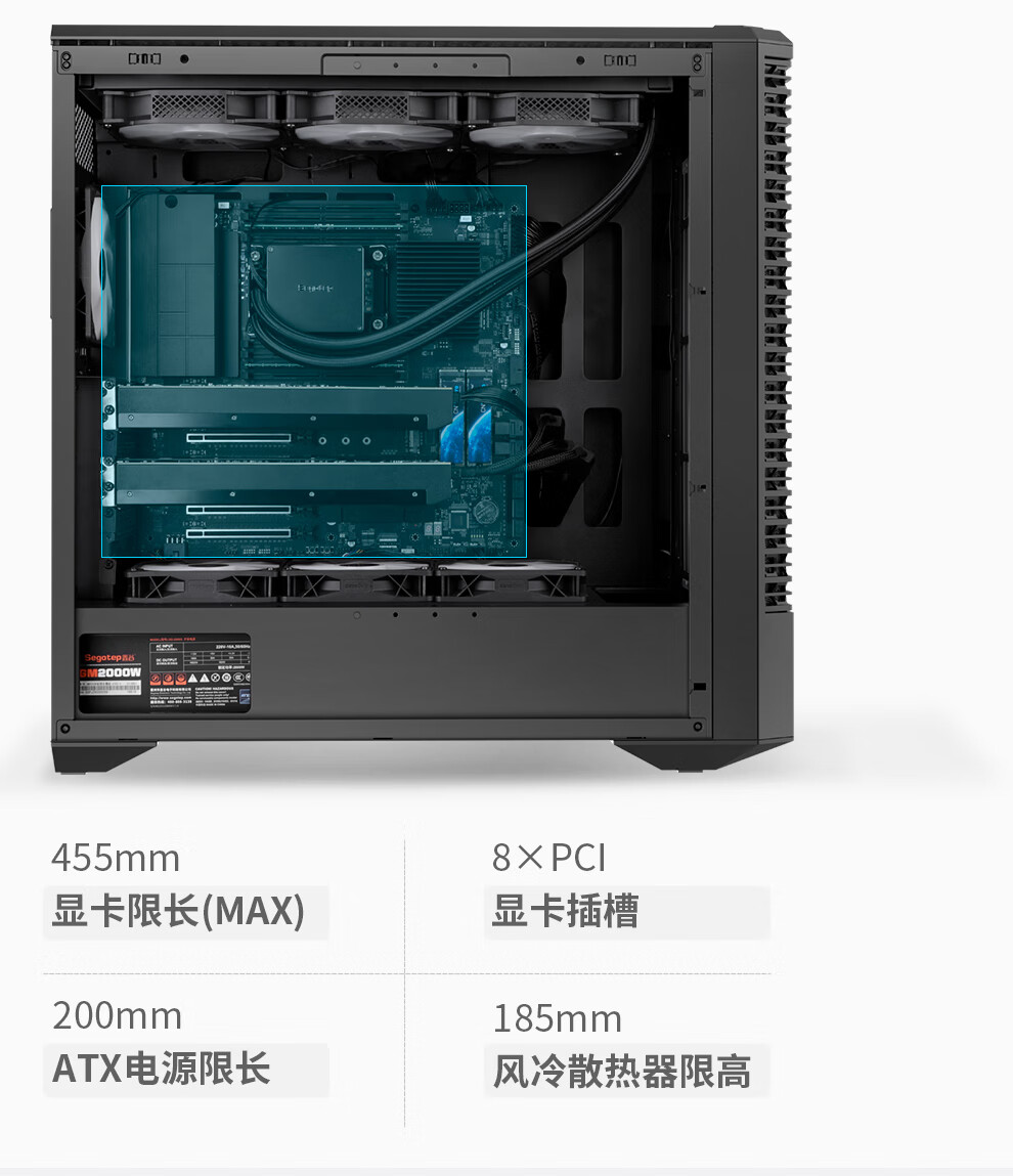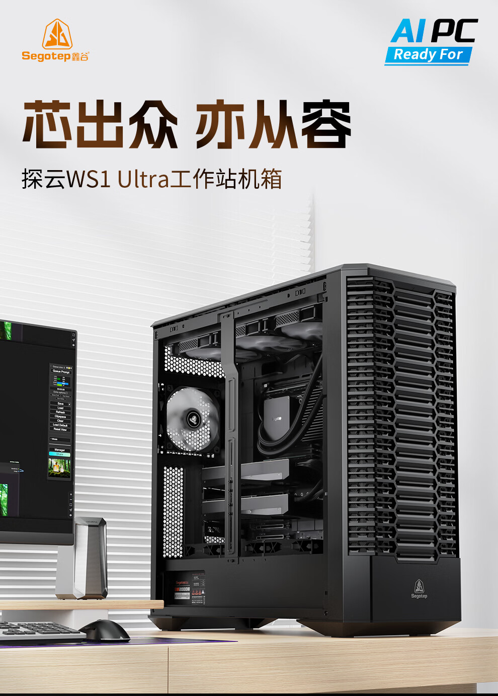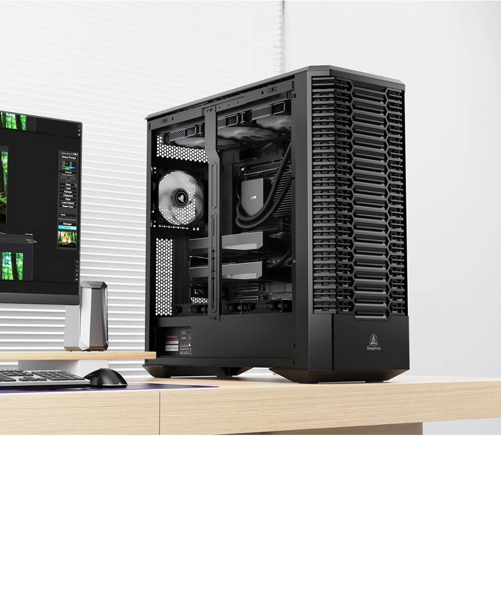鑫谷(segotep)探云WS1 Ultra工作站机箱(E-ATX360/420水冷位/支持5080-5090多显卡多硬盘推理/防尘设计带支架)
