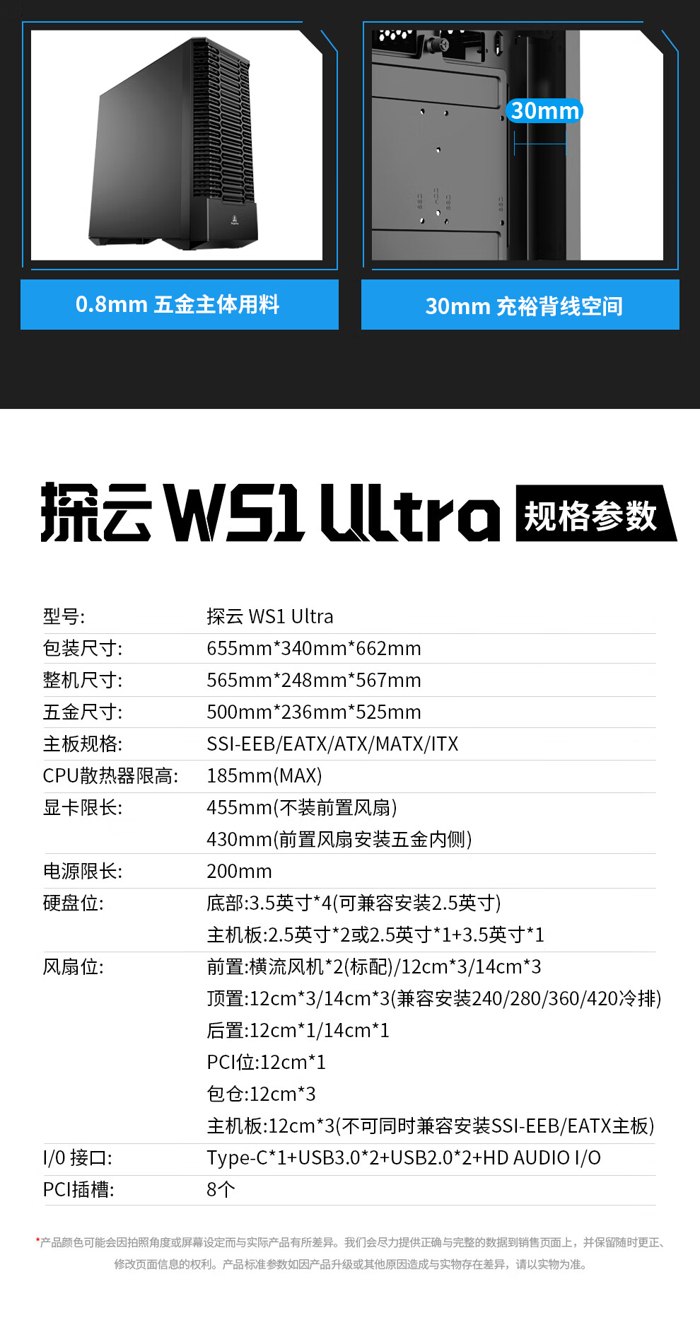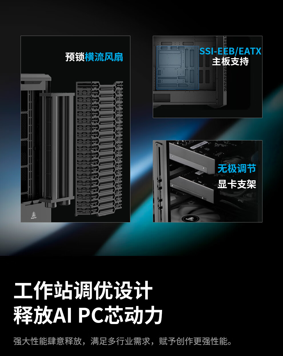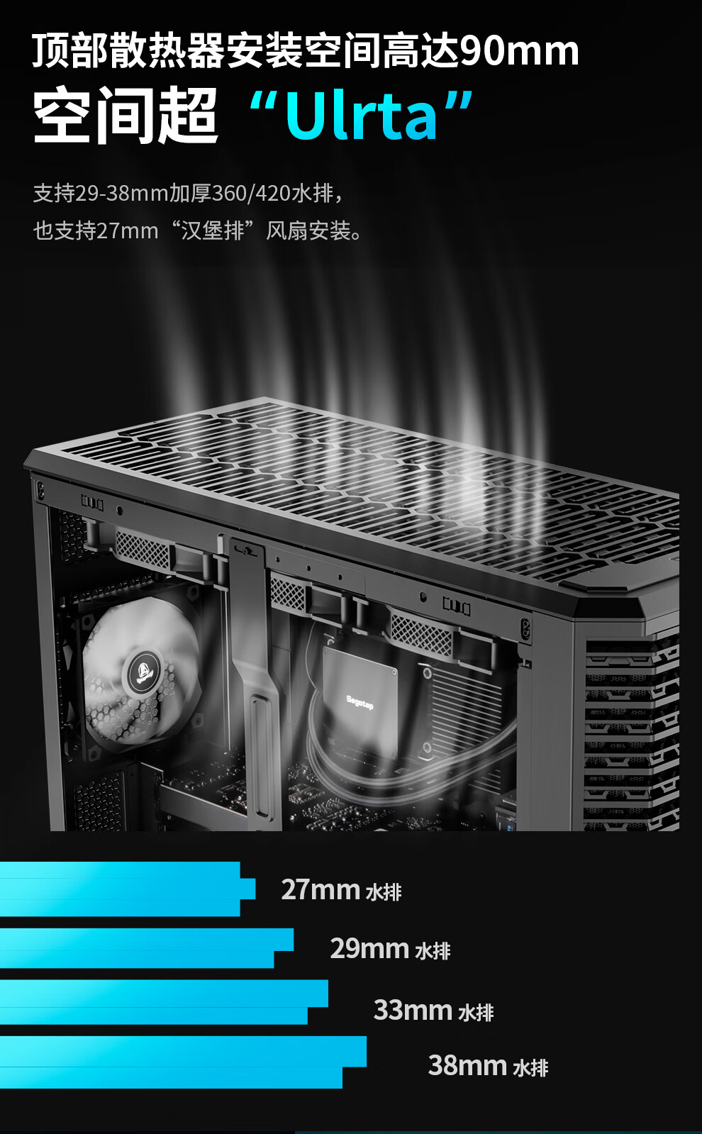 鑫谷(segotep)探云WS1 Ultra工作站机箱(E-ATX360/420水冷位/支持5080-5090多显卡多硬盘推理/防尘设计带支架)