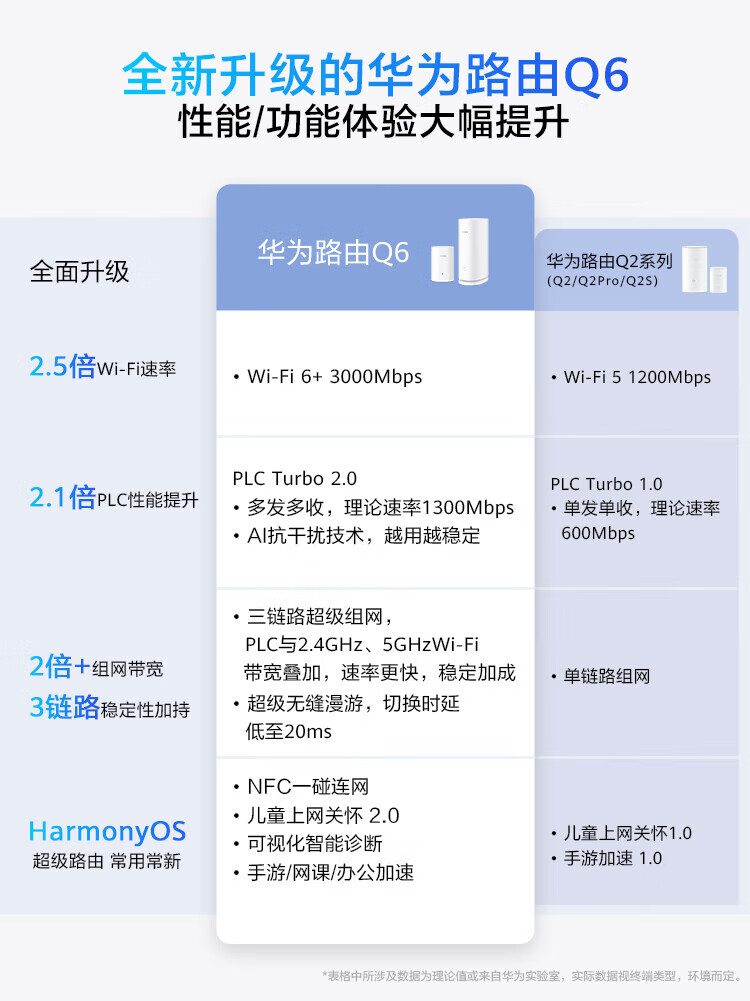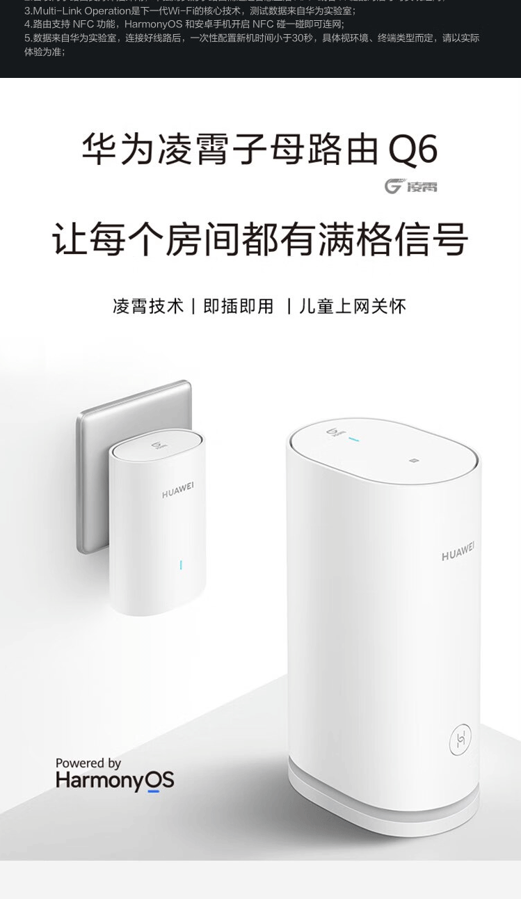 华为子母路由器Q6凌霄千兆全屋WiFi6+套装穿墙王无线分布式字母路由器电力猫家长别墅大户型电力线 Q6子母路由【全网通用】运营商版