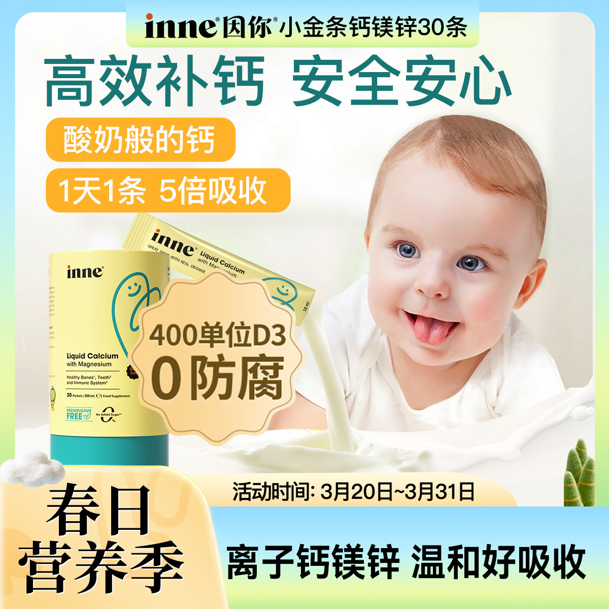 inne 因你小金条钙镁锌儿童液体钙补D3柠檬酸钙效期至26.11月