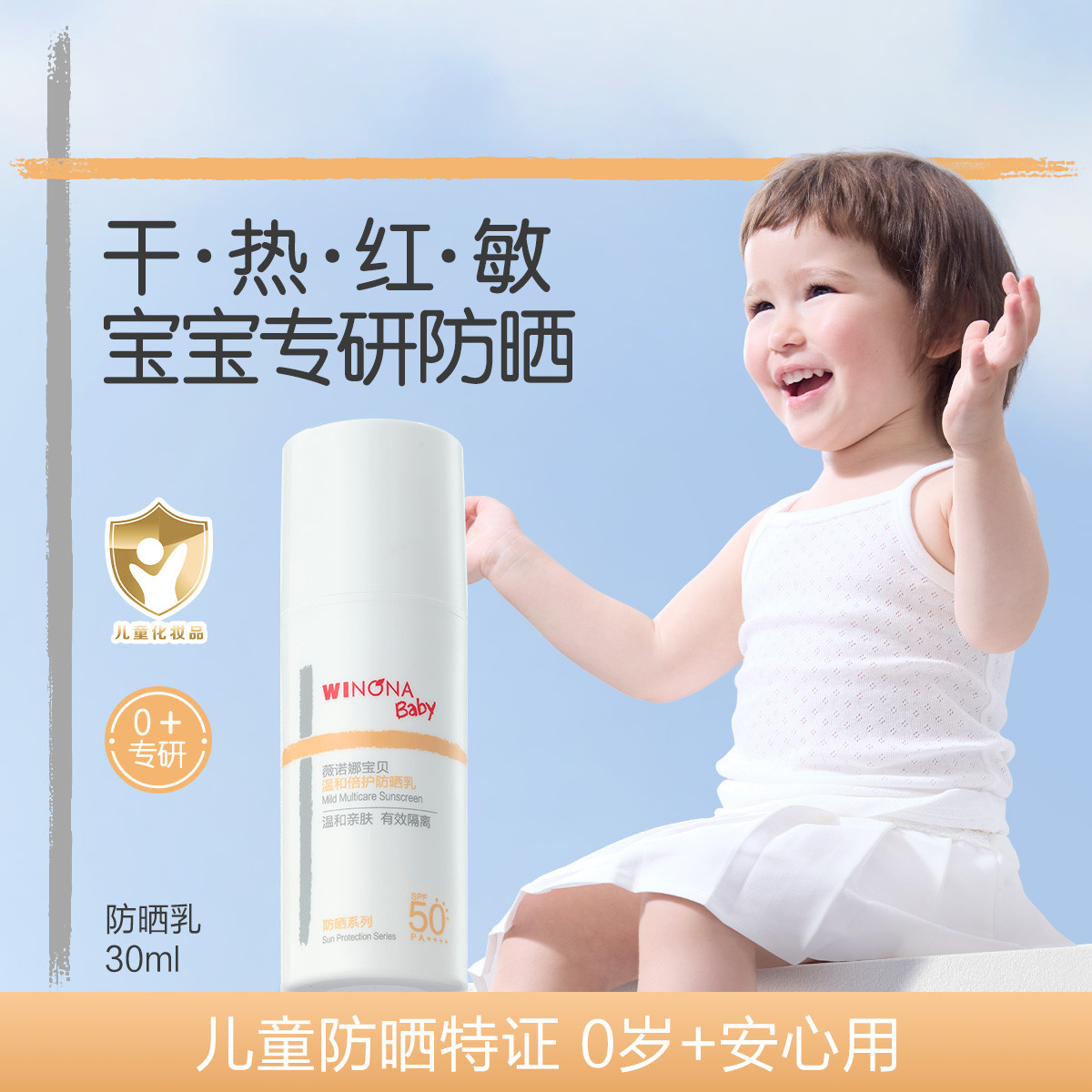 薇诺娜宝贝 儿童专研防晒乳30ml高倍温和防晒霜SPF50+0岁宝宝可用