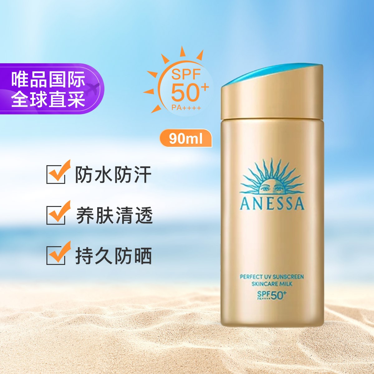 资生堂 安热沙小金瓶防晒乳液90ml 持久耐晒 新版大规格