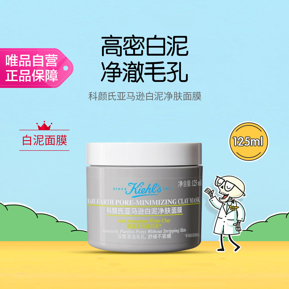 Kiehl's 科颜氏第二代亚马逊白泥净肤面膜125ml涂抹泥膜去黑头缩毛孔