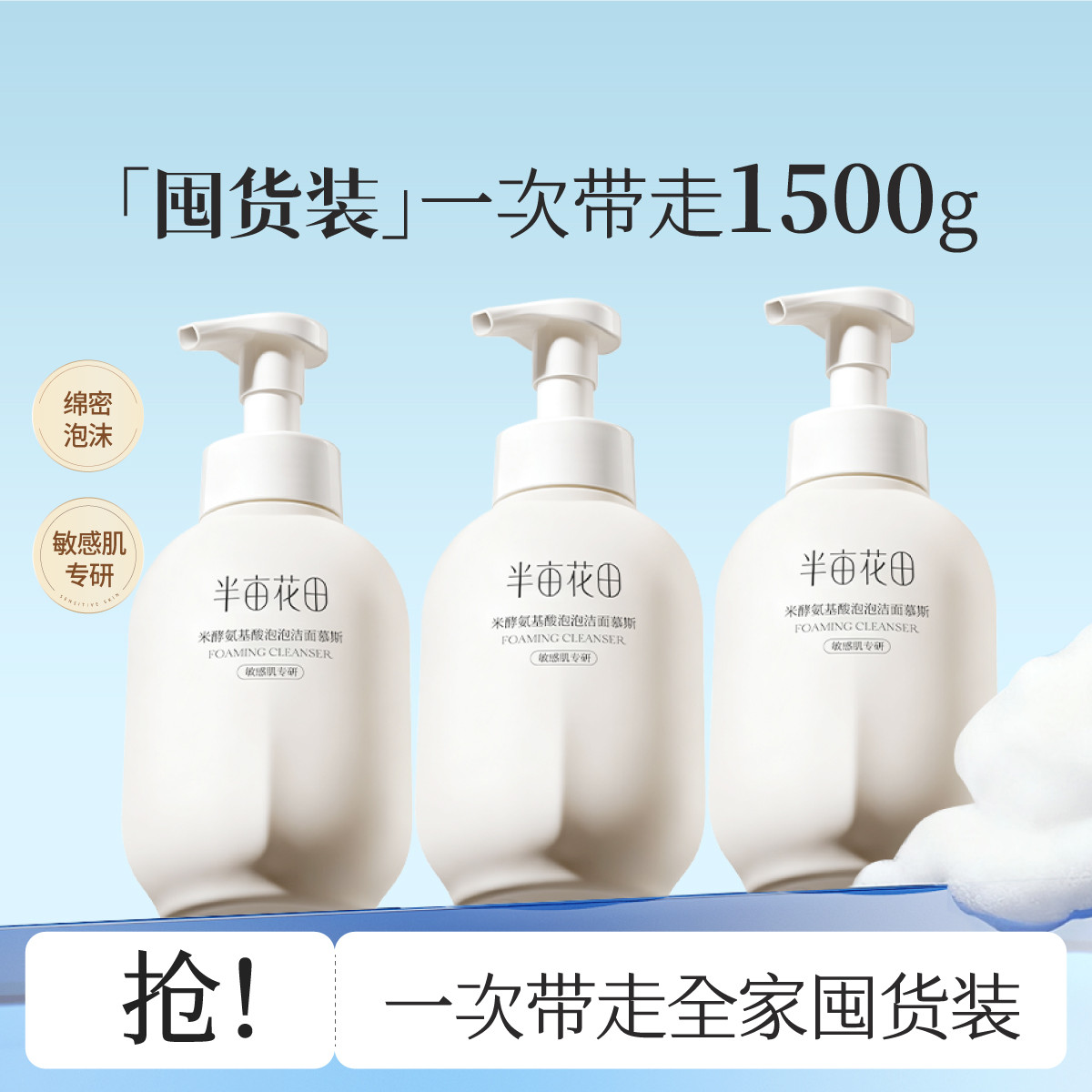 半亩花田 【大规格超值囤货】水润深层清洁 氨基酸洗面奶女清洁毛孔控油男